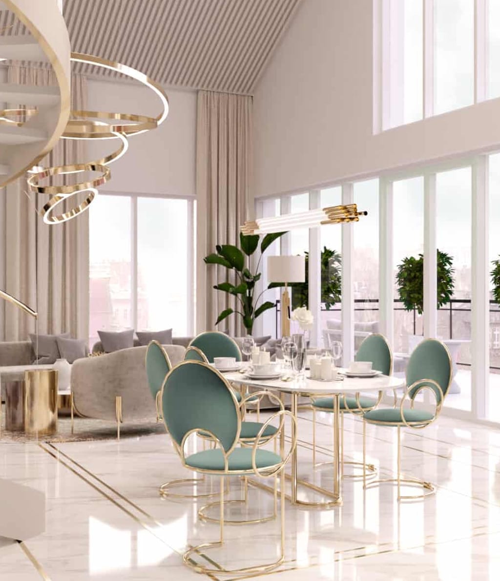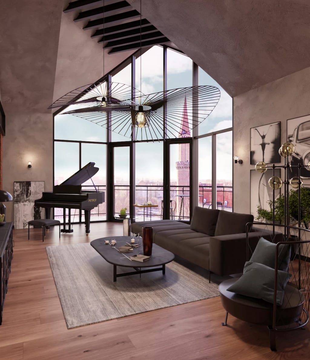 Wysokie przeszklenia, siłownia i sauna, parking podziemny, klimatyzacja, wideofon z funkcją przywoływania windy z własnego apartamentu oraz stacje ładowania pojazdów elektrycznych.