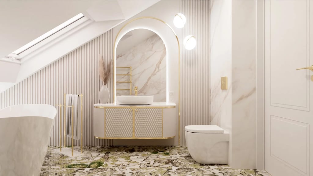 Reprezentacyjny hol z recepcją, szklane windy i przemyślane detale, które tworzą niepowtarzalny klimat.